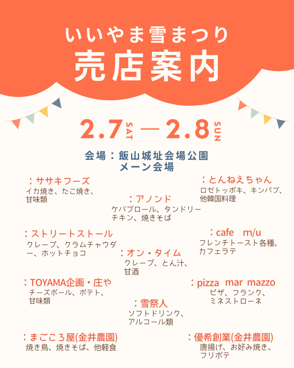 | オン・タイム | クレープ、とん汁、甘酒 |
