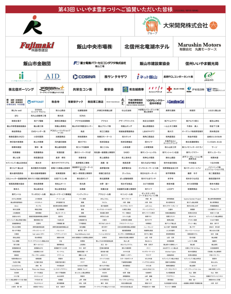 第43回「いいやま雪まつり」は、たくさんの方々のご支援・ご協力により催されました。 ご協力いただき本当にありがとうございました。